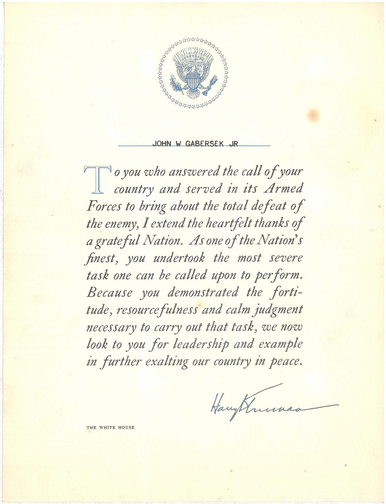 A Soldiers Story - Sergeant John William Gabersek Jr.