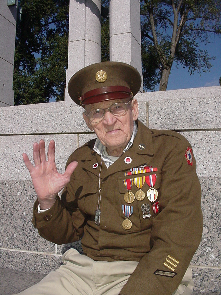 I’ve seen this look before on his face before. Johnnie and I have been to the WWII Memorial about a dozen times. Each time we go, we’re there for hours telling stories, answering questions, sharing photos, posing for more, and you guessed it, getting hungrier by the minute. Dressed in uniform, Johnnie looks dignified and like the true soldier he was. We field the same questions over and over and have developed a routine to make our visit there something a little less boring and a lot more educational for the visitors, especially the kids. Dragged to DC kicking and screaming by their parents, these kids don’t want to be there in the first place. So with Johnnie’s jokes, we turn a pretty boring day into the unexpected.