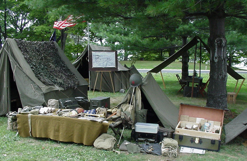 After enjoying another breakfast back at the hotel surrounded by people who where either participants in the D-Day reenactment, helped make it happen, or just witnessed the yearly event, Johnnie and I packed up our car and headed back to the lakeside camp to somehow squeeze in all the rest of my gear. Even though it was still early in the morning, only two of our guys were still back at the camp trying to do the same thing. Events like this happen only a few times a year and many of the reenactors pack as much gear and memorabilia into their vehicles as possible. Although I’ve only been a part of this hobby for just over 3 years, I have acquired quite a collection. With all the stuff lying camouflaged under a standard G.I. issued pup tent, Johnnie once again looked at me as if I where a little crazy as I started tearing down. Despite the hodge-podge of packs, web gear, a footlocker, stove, two tents, and the 20 helmets I picked up for one of our members back home in Pittsburgh, he couldn’t believe I was able to pack it all in.