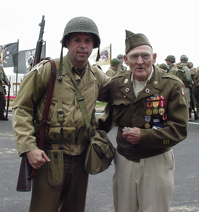 By the time we’ve made it to #5, people are a little bit pissed or laughing so hard that they can’t stand it. When we need to be we’re quite serious, but most of the time we’d rather be laughing than crying. We’ve had our special moments, lying plaques and wreaths at the Pennsylvania monolith, but putting a smile on a kid's face is what the most important thing we do there. There’s always a message that Johnnie tells these kids, be good to your parents and work hard to make something of your life. My favorite photos of John at the Memorial are when kids surround him as he shares his experiences. Kids are eager to learn about WWII, yet they only have 2 pages in their history books to consult while in high school. When all the Veterans are gone, it I’ll be up to the reenactor to tell their stories and I’ll be doing my best to tell them the way Johnnie does.