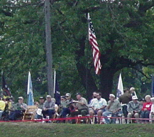 After the show Johnnie and I retreated back to the 28th encampment where a number of the guys are enjoying the evening. In January 1946, Johnnie last wore the uniform of a United States soldier. Yet his recollections of that time are a clear as spring water. Having escorted John to so many trips to the WWII Memorial, I thought I knew all of his stories, yet after today’s gunfire and activities, old memories resurfaced. Yet the most important memory John recalls is the first one he told me years ago about the day he and a Japanese tank had a rendezvous. When Johnnie first told me what had happened to him, I’ve always wondered why he was never issued the Purple Heart. He said to me, “I didn’t even think about it then, we still had a job to do and despite being hurt, I was still helping other guys who were worse off than me.” So it’s been a mission of mine to see that Johnnie gets what he deserves. Although Johnnie’s been awarded a 30% disability from the army, unfortunately, any documentation that may have supported the issuance of the Purple Heart was destroyed in a fire in 1973. It’s been a long and slow road. With all the changes to government policy in the wake of 911, it’s been extremely difficult to talk to anyone about this without Johnnie and I being in the same room at the same time. The frustration is at times overwhelming, but I’m not going to give up until he is awarded what he truly deserves...