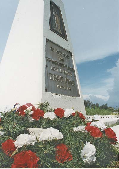 Ernie Pyle, well known war correspondent was killed during the fighting on Ie Shima island and was later buried in the 77th Division cemetery there.